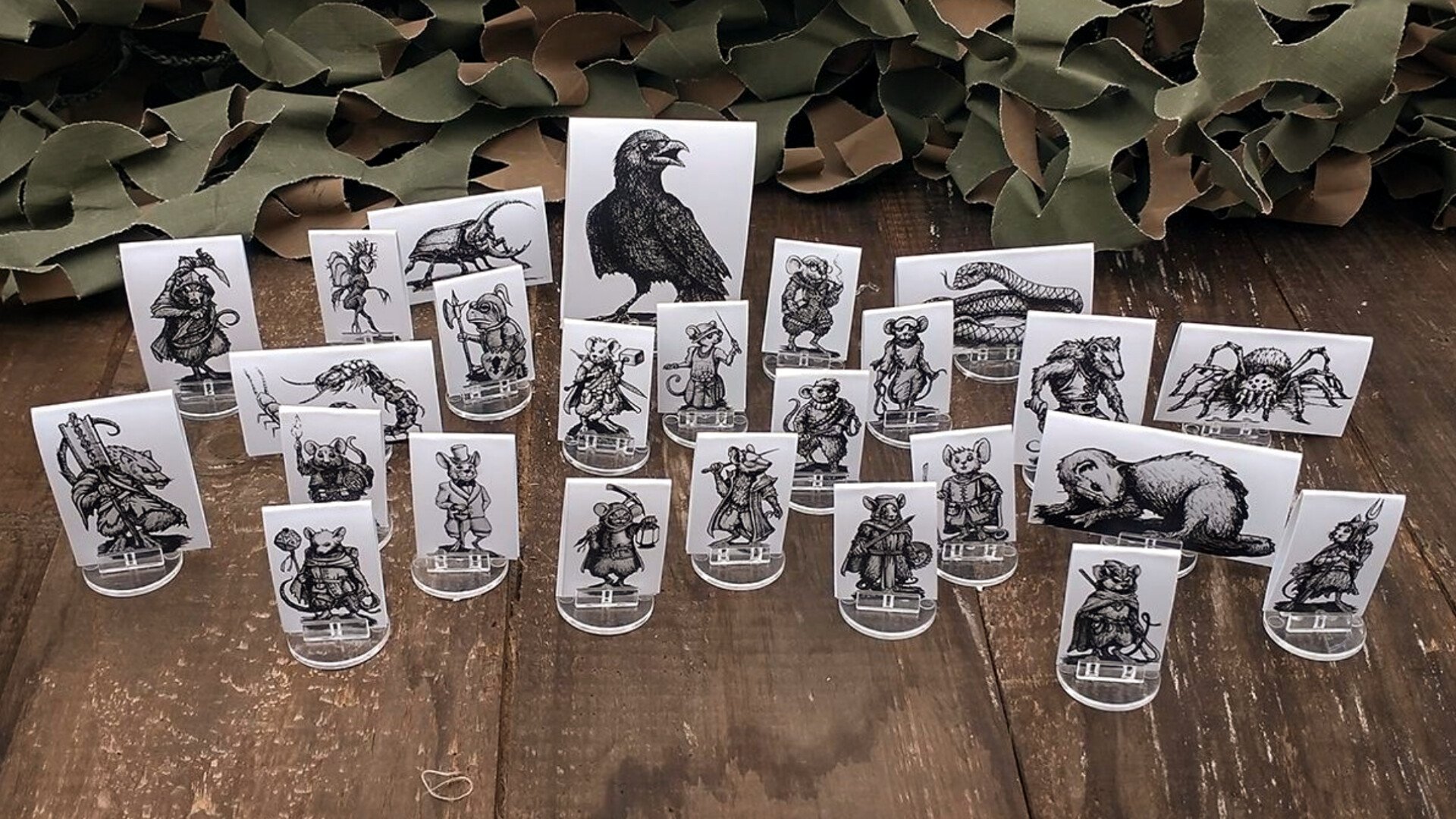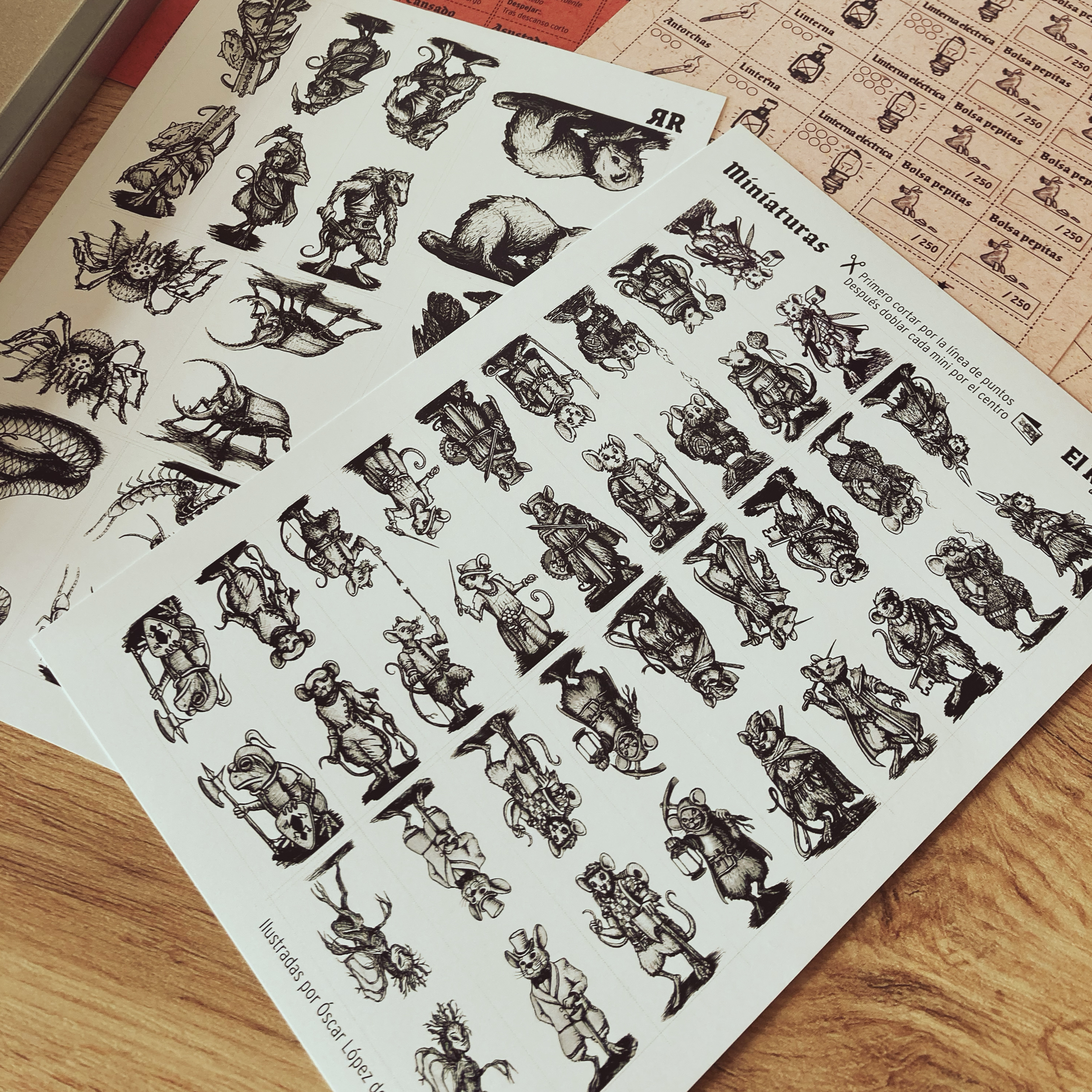 2 planchas con más de 20 miniaturas de ratones y otras criaturas